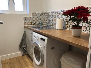 Studio-style apartment with double bed and en-suite bathroom (shower over bath) and mini-kitchen. Makes an ideal second bedroom to The Hayloft.